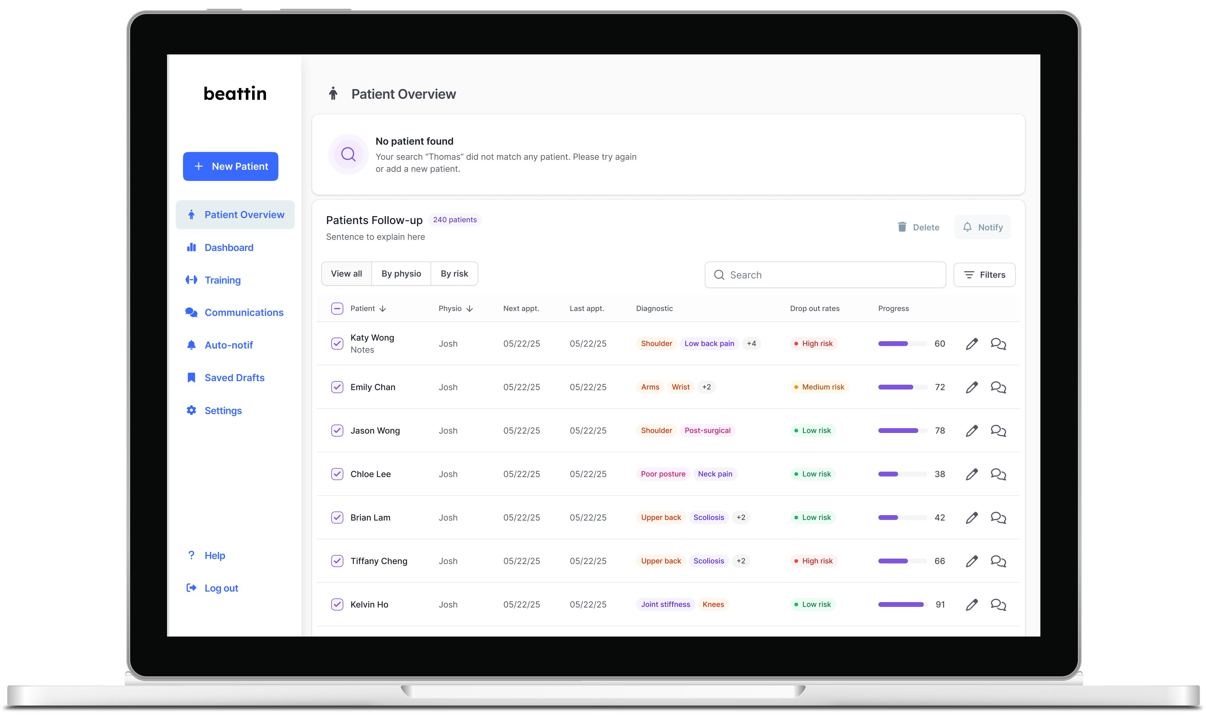 Identify your patient with high dropout risk, smart message suggestions help keep in touch with your patients.